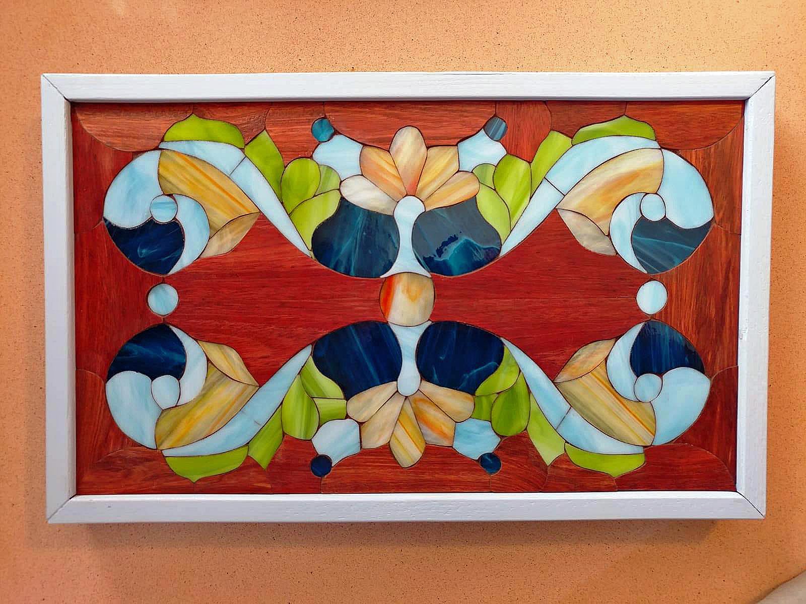 I was always fascinated by colored glass and learned the art of stained glass. However, I did not like the lead and copper used in standard stained-glass art. It is toxic to work with, and, for me, metal is a cold material – heartless and even evil (sorry ….)